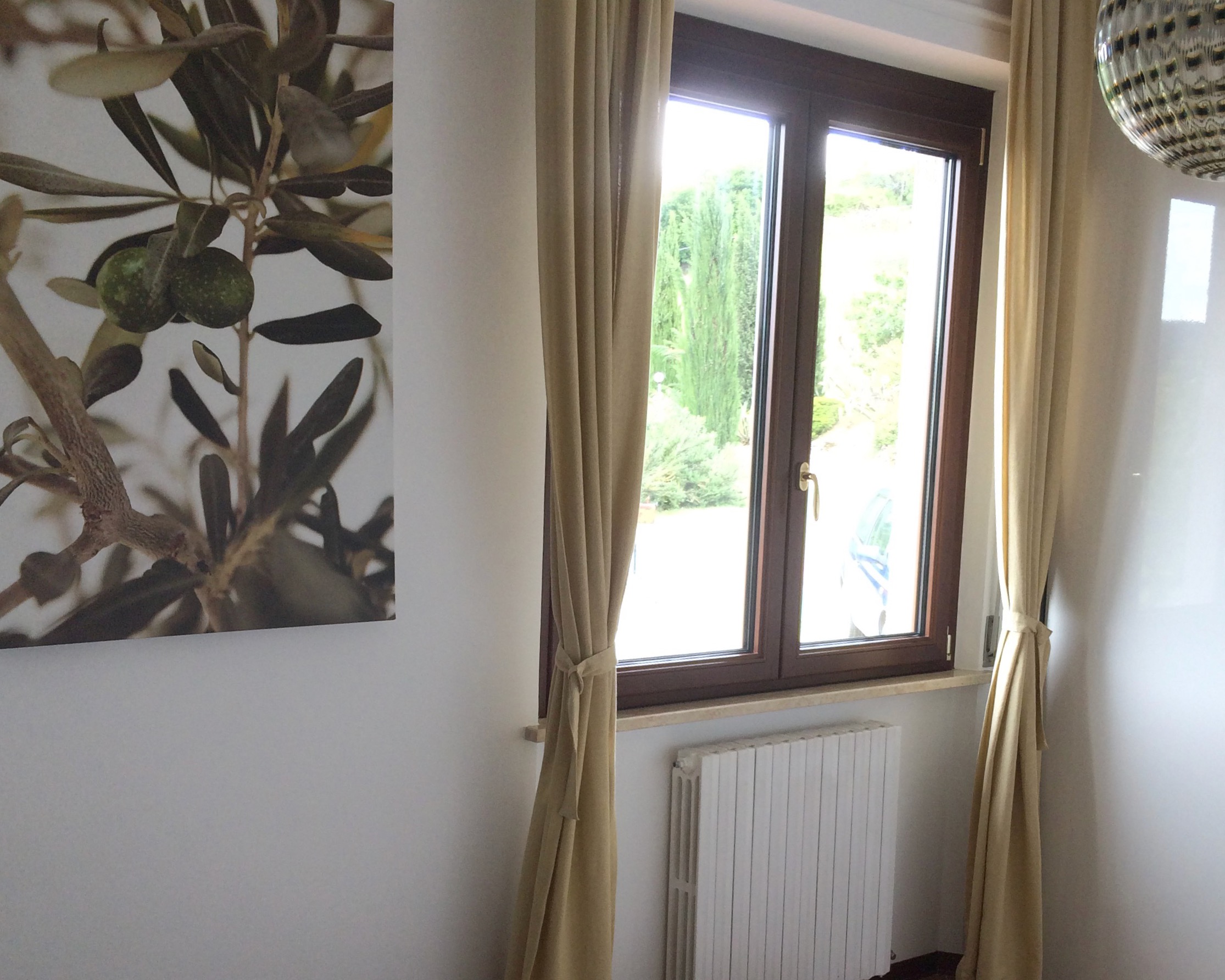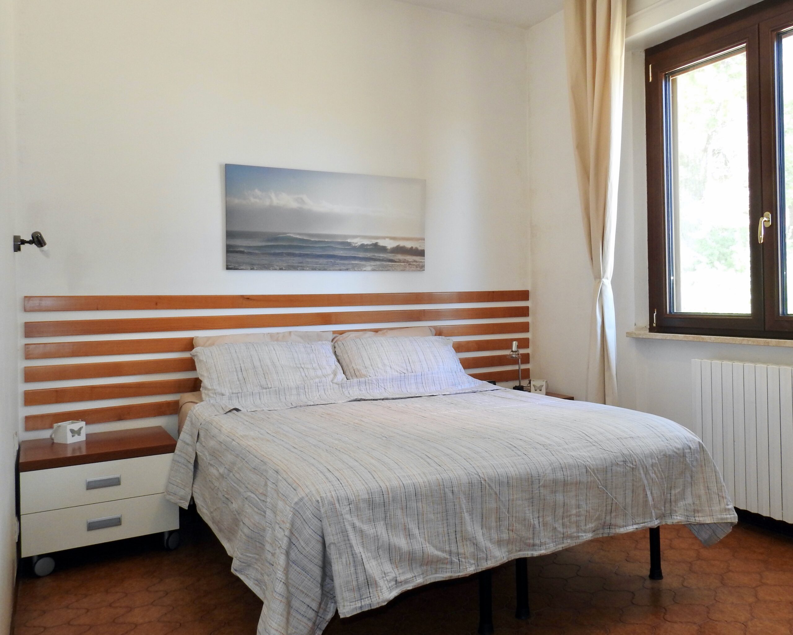 Het overdekte terras bij het souterrain nodigt uit tot een siësta in de hangmat, een aperitvo in het zonnetje of tot een gezellige BBQ of pizza-avond. De voorpret begint al met het opstoken van de pizza-oven en het kopen van verse worstjes en lokale vleesspiesjes ‘arrosticini’ bij de slager onderaan de heuvel. Je kunt er lekker lang tafelen met op de achtergrond het dorpje Montefiore dell’Aso en in de verte het Sibillini gebergte.